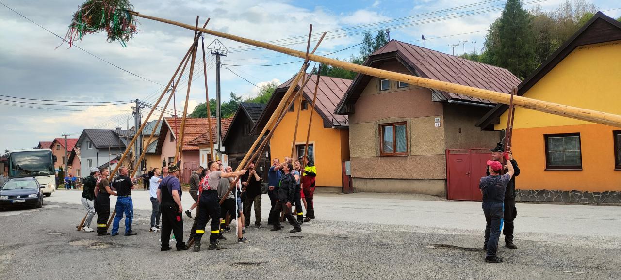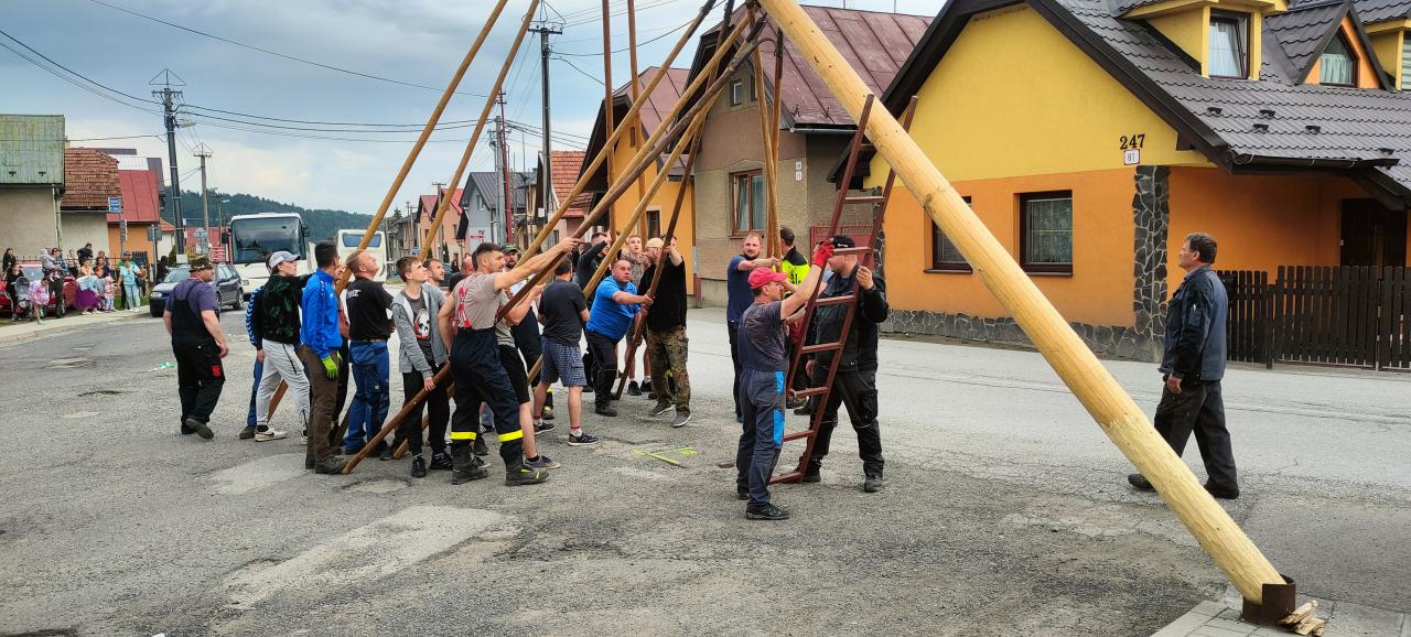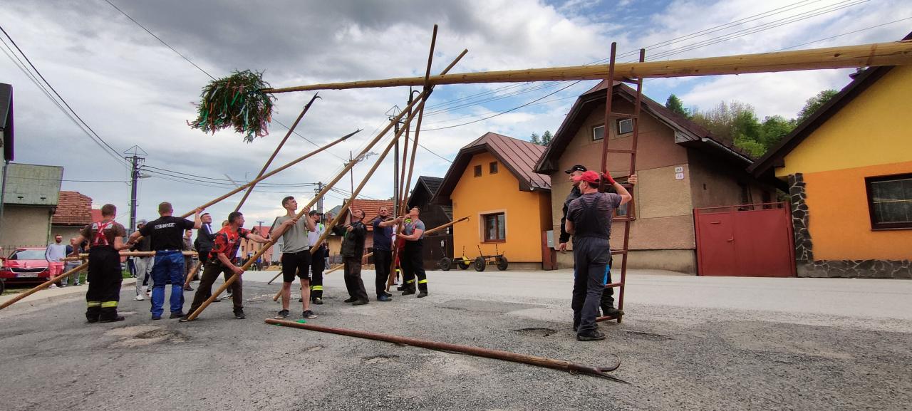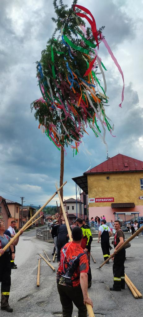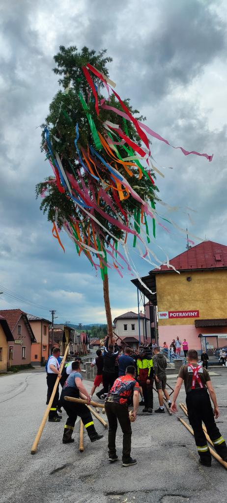 Piatok 26.5.2023 sa tak ako každý rok v našej obci postavili dva vysoké máje bohato ozdobené pestrofarebnými stužkami.