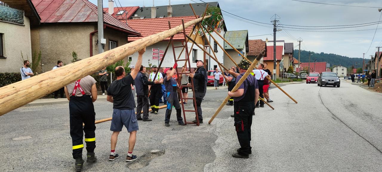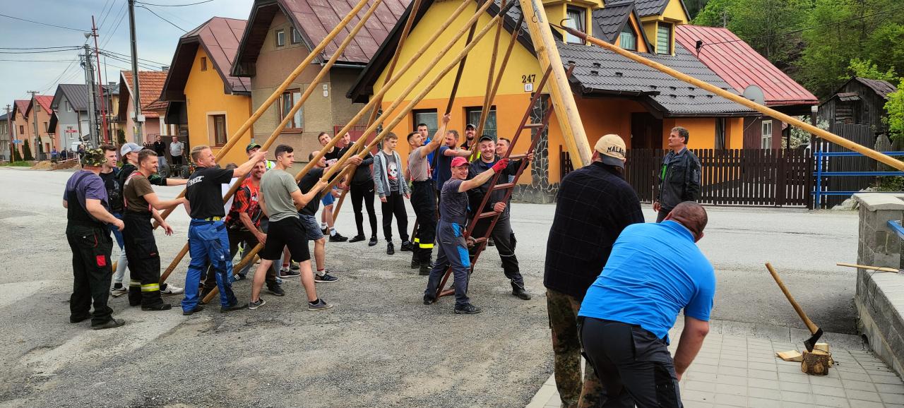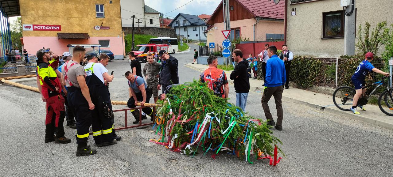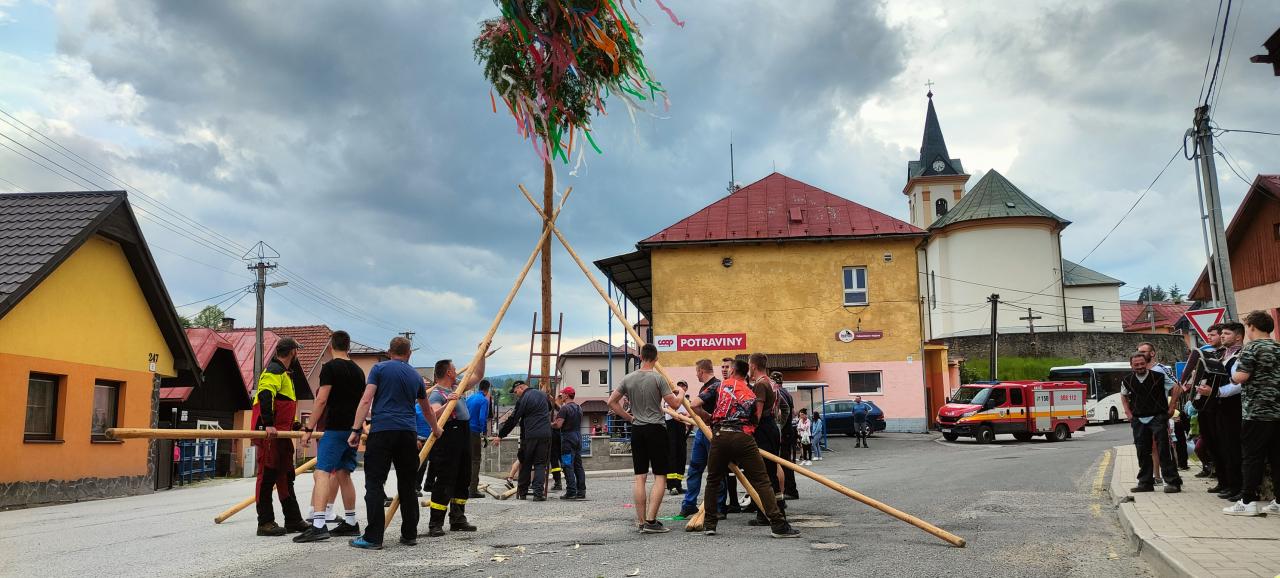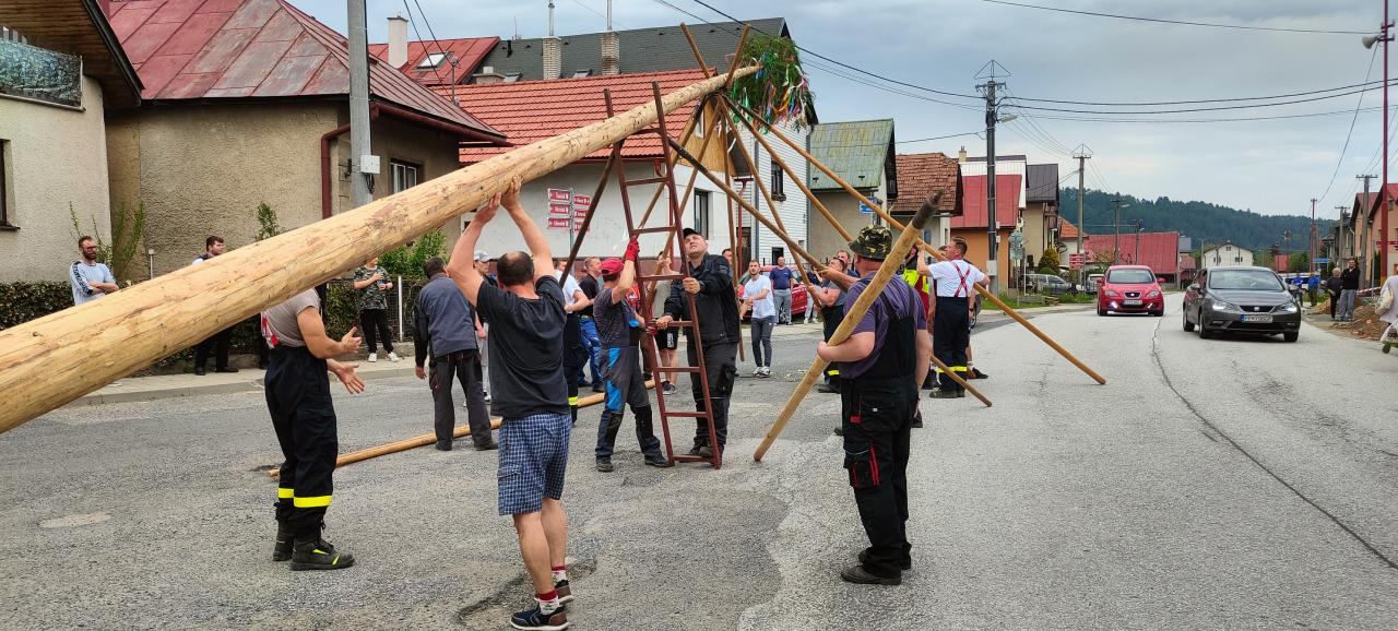 Piatok 26.5.2023 sa tak ako každý rok v našej obci postavili dva vysoké máje bohato ozdobené pestrofarebnými stužkami.